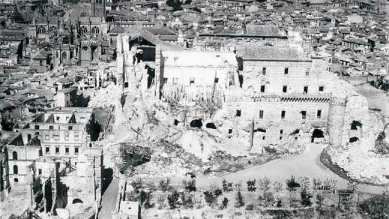Замок Алькасар был построен в северной части Толедо во времена королей Леона и Кастилии Альфонсо Храброго и Альфонсо Мудрого (т. е. в XI–XIII веке) на месте ещё римских построек. Император Карл V в XVI веке повелел перестроить замок, возвышающийся над городом и рекой Тахо. Так Алькасар приобрёл характерный облик, сохранявшийся вплоть до начала войны.
