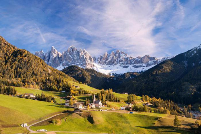 Это необыкновенно живописная деревушка в Доломитовых Альпах, окруженная снежными вершинами и зелеными полями. Санта-Маддалена находится в Южном Тироле, граничащем с Австрией, поэтому в ней все знаки переведены на немецкий, итальянский и локальный ладинский язык. Кстати, блюда в местных ресторанах также представляют собой своеобразный культурный микс.