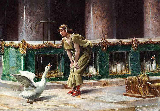 Дело было в том, что неподалёку был храм древнеримской богини Юноны. Там держали священных птиц, гусей, которые нужны были для служения. Напуганные злоумышленниками, птицы подняли шум. Этот переполох насторожил римлян, и они привели свои ряды в полную боевую готовность. Атака галлов была отражена. С тех самых пор появилось выражение «гуси спасли Рим».
