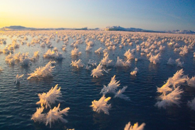 О существовании этих нежных, очаровательных цветов знают немногие. Морозные цветы образуются достаточно редко – только на молодом льду в холодной морской воде. Их формирование происходит при низкой температуре в безветренную погоду. Диаметр подобных образований обычно не превышает четырёх сантиметров, выглядят же они как хрустальные копии настоящих цветов. В них содержится много соли, этим и объясняется кристаллизованный вид морозных цветов.