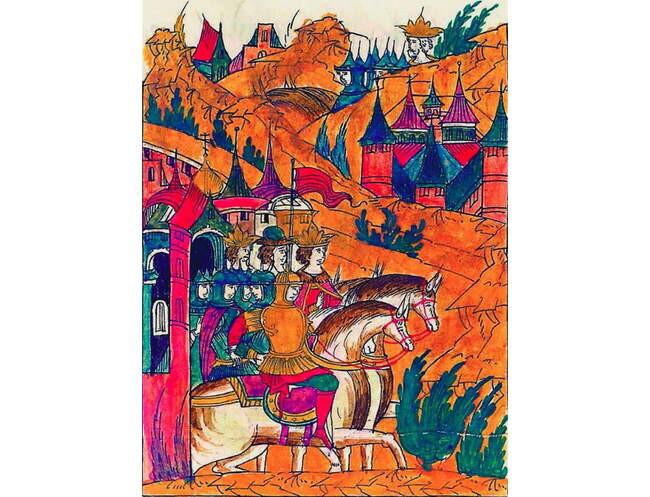 Иван Грозный выступает из Москвы против хана. Миниатюра из Лицевого свода, том 22