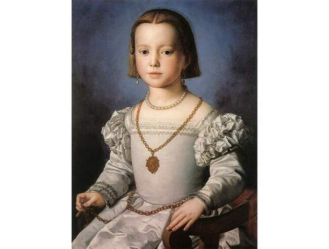 Еще одним ярким детским изображением является «Портрет Биа Медичи, дочери Козимо I» (Bia di Medici, 1542). Малышка умерла от лихорадки в пятилетнем возрасте, и по просьбе отца картина была создана уже после смерти девочки. На ней ребенок с румяными пухлыми щёчками и взрослым взглядом смотрит вроде бы на зрителя, но в то же время - мимо него. Здесь можно заметить одну яркую деталь: на девочке надет медальон с изображением ее отца. Несмотря на то, что Биа родилась еще до брака с Элеонорой Толедской, она была любимицей Козимо Медичи.