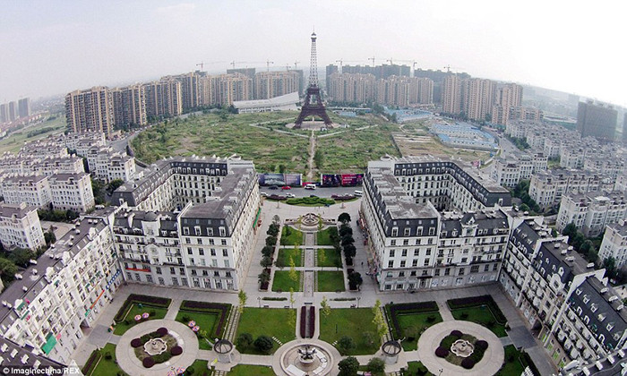 Забавно, что в самом Париже продаются в невероятных количествах миниатюрные Эйфелевы башни, сделанные в Китае, однако "для внутреннего рынка" Китай решил сделать чуть ли не полноразмерную башню - готовое строение возвышается на треть оригинальной высоты французской достопримечательности. Находится этот поддельный Париж в Тьяндученг (Tianducheng)- пригороде большого города Ханчоу в Китае.