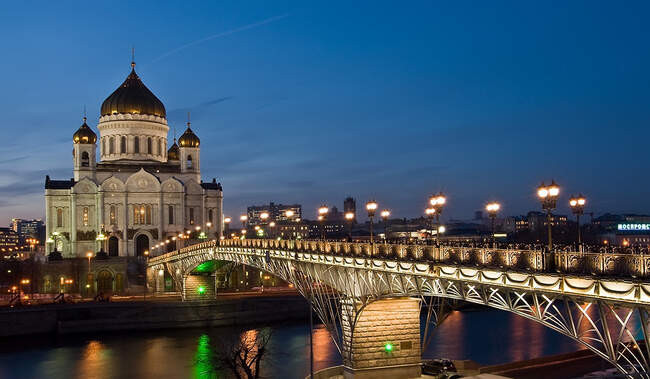 Пешеходный мост расположен напротив храма Христа Спасителя. Если смотреть на юг вдоль реки, открывается вид на сюрреалистичный бронзовый памятник Перту I скульптора Зураба Церетели. С противоположной стороны смотровой площадки хорошо видна юго-западная часть Кремля. В вечернее время окружающие здания красиво подсвечены разноцветными огнями.