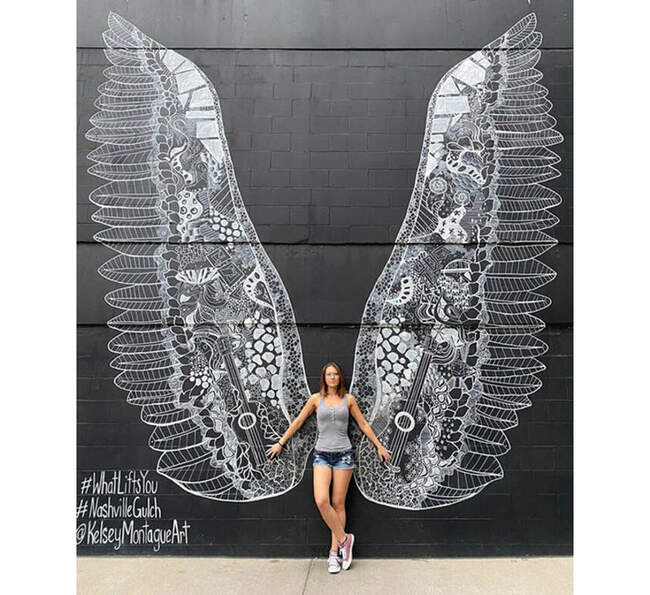 Та самая фреска в Нэшвилле с большими белыми крыльями... В очереди, чтобы сфотографироваться с этой парой крыльев на стене можно провести больше часа.
