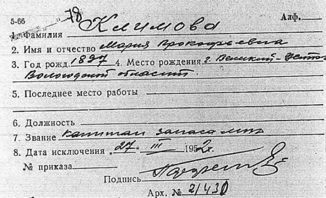 Учетная карточка Марии Прокофьевны Климовой