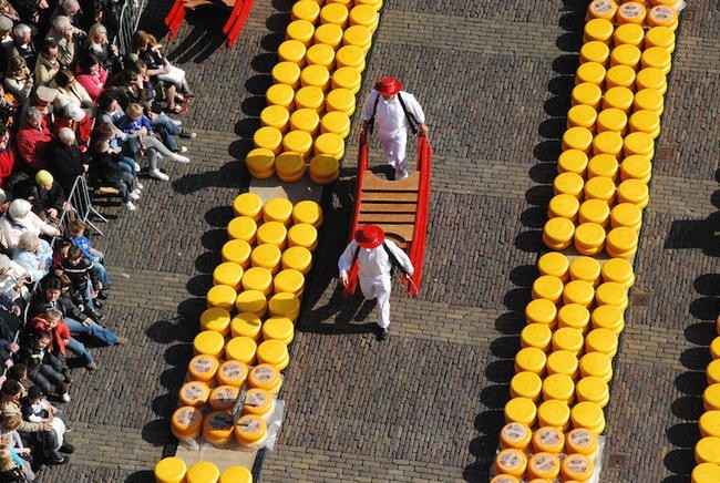 40-минутная поездка на поезде из Амстердама приведет посетителей в Алкмар с его знаменитыми сырными традициями, которые восходят к 1593 году. Каждую пятницу с апреля по сентябрь посетители могут наблюдать, как торговцы сырами в традиционных костюмах воспроизводят многовековую практику взвешивания более 2000 сыров, укладывая их на салазки и загружая в грузовики. Это красочное и живое событие настолько популярно и интересно, что ежегодно собирает около 100 000 зрителей. Более того, вокруг рынка расположено множество киосков, где посетители могут купить голландские сыры, такие как Гауда и Эдаммер.