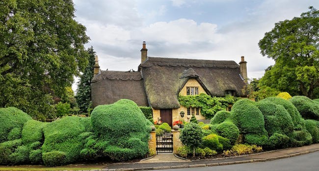 В Великобритании, как известно, очень много старинных домов, однако у кровельщиков существует практика не заменять крыши полностью, а просто покрывать старые слои соломы новыми. И так – по нескольку раз за всю историю существования здания, ведь некоторым из домов по 100-200 лет. В итоге крыши получаются многослойными и выглядят толстыми, что смотрится очень живописно. Отсюда и ассоциация с пряничным домиком. Однако если старая кровля совсем плоха, приходится ее все же снимать, и такая замена производится, как правило, отельными частями.