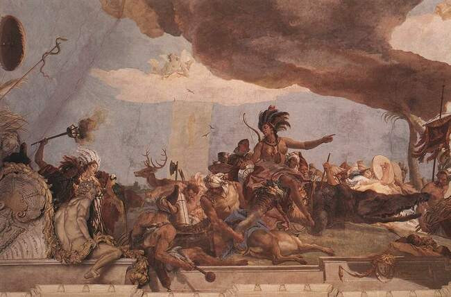 Если Венеция прикрывала свои проблемы маской и пляской, то Джованни Баттиста Тьеполо (Giovanni Battista Tiepolo) своим творчеством создал для неё еще одну, самую искусную. Маску из воздуха, света и полутонов, радости жизни и здоровой иронии, чтобы не казаться простоватым. Как и Венеция, художник в своих картинах как будто говорит: «Не относитесь ко всему этому серьезно. Это просто красиво, не нужно драматизировать».
