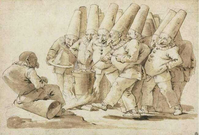 Графика | Джованни Баттиста Тьеполо | Пульчинеллы готовят на обед клецки с пармезаном