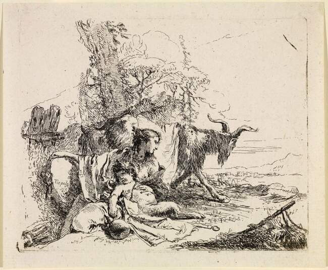 Графика_Джованни Баттиста Тьеполо_Vari Capricci_Нимфа, Сатир и две козы