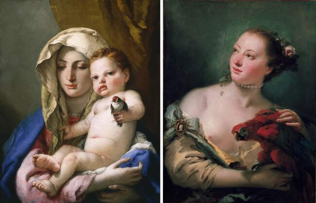 Живопись | Джованни Баттиста Тьеполо | Мадонна со щеглом, 1760 и Женщина с попугаем, 1760
