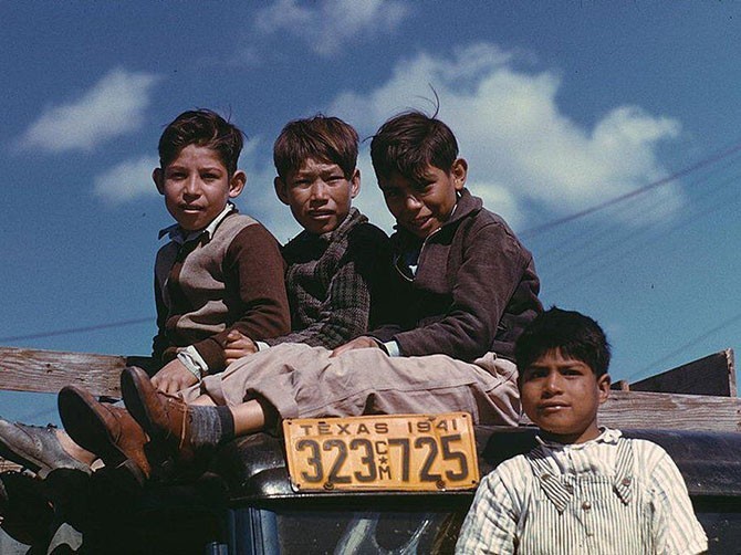 Дети собирают модель аэроплана, Робстаун, штат Техас, январь 1942 года. Фотограф Артур Ротштейн (1915-1985)