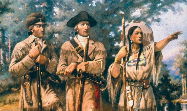 Индианка Сакагавея показывает путь Льюису и Кларку.