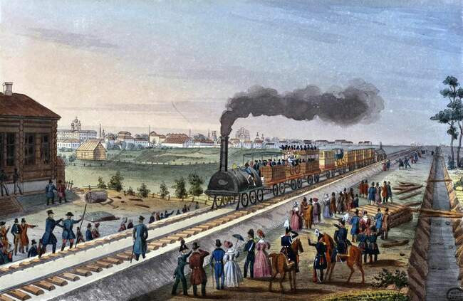 В 1837-м введена в эксплуатацию первая российская железная дорога, которая соединила Петербург и Царское Село. Вслед за ней были открыты Варшаво-Венская (1848 г.) и Николаевская (1851 г.) железные дороги. Не менее активно развивалось пароходство, как морское, на Чёрном и Балтийском морях, так и речное, на Волге и Днепре.