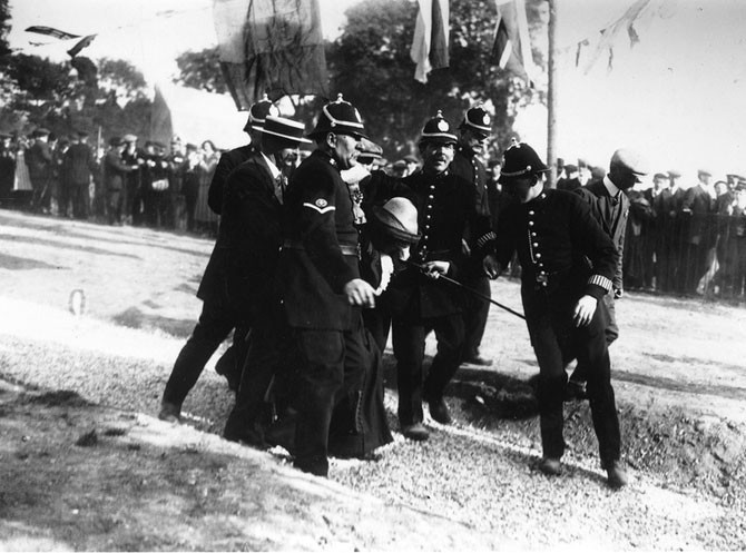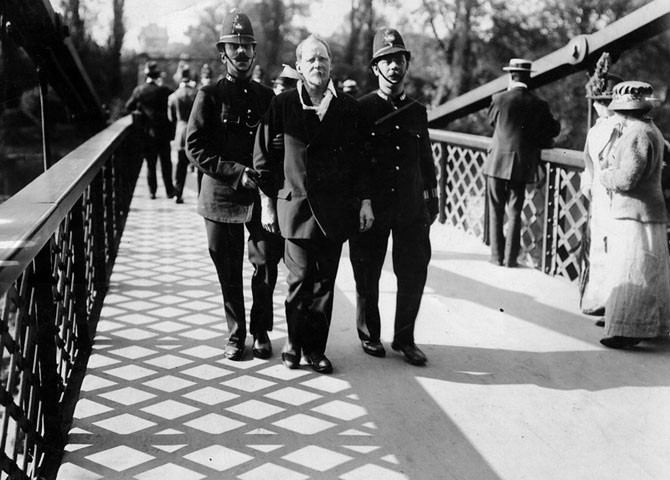 Задержание суфражиста в лондонском парке Сент-Джеймс, после акции в Букингенском дворце. 1912 год.