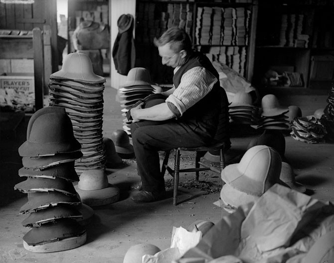 Изготовление полицейских шлемов на лондонской улице Тули-стрит. 7 апреля 1930 года.