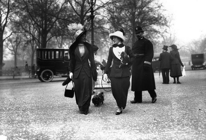 Баронесса Рошикранц и Мисс Бат прогуливают собачек в Гайд Парке. Апрель 1912 года.