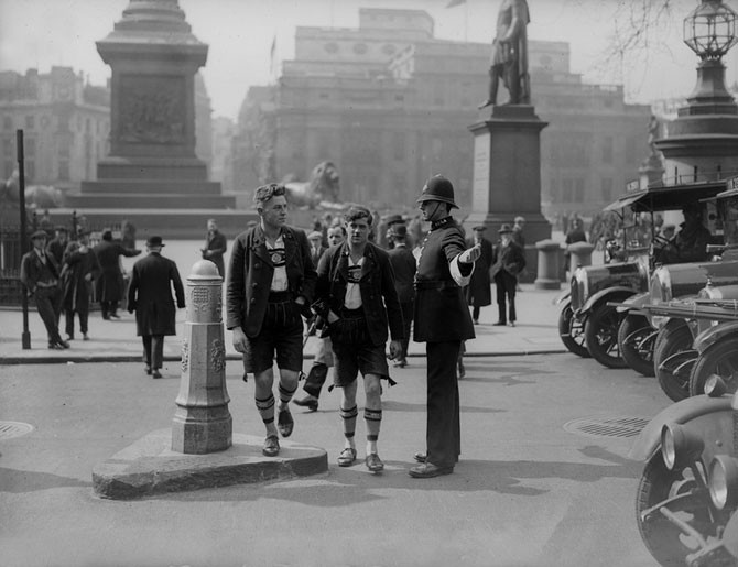 Немецкие туристы на Трафальгарской площади, 12 апреля 1931 года.