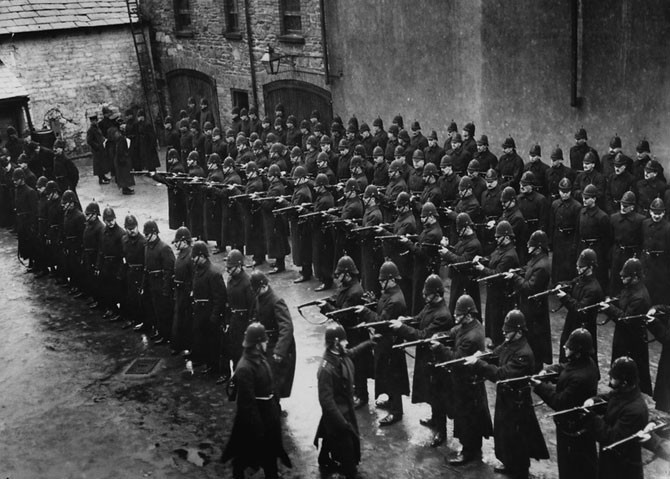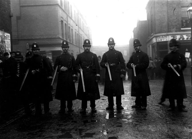 Полиция вооружена огнестрельным оружием по приказу Черчилля, во время осады Сидней-Стрит. Январь 1911 год.