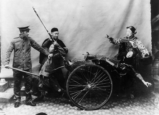 Постановочная сцена с участием китайского полицейского. Китай, 1900 год.