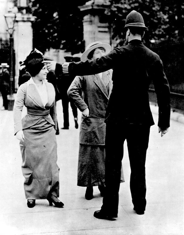 Две суфражистки беседуют с полицейским. Лондон, 1912 год.