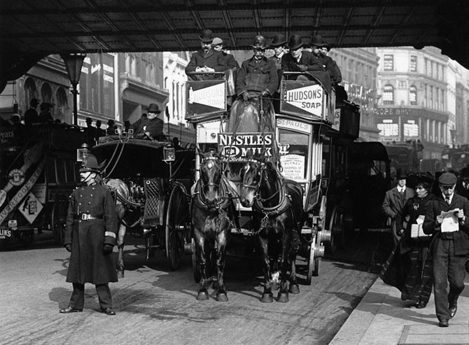 Конка под железнодорожным мостом в Ладжигейт Хилл, Лондон. 1902 год.