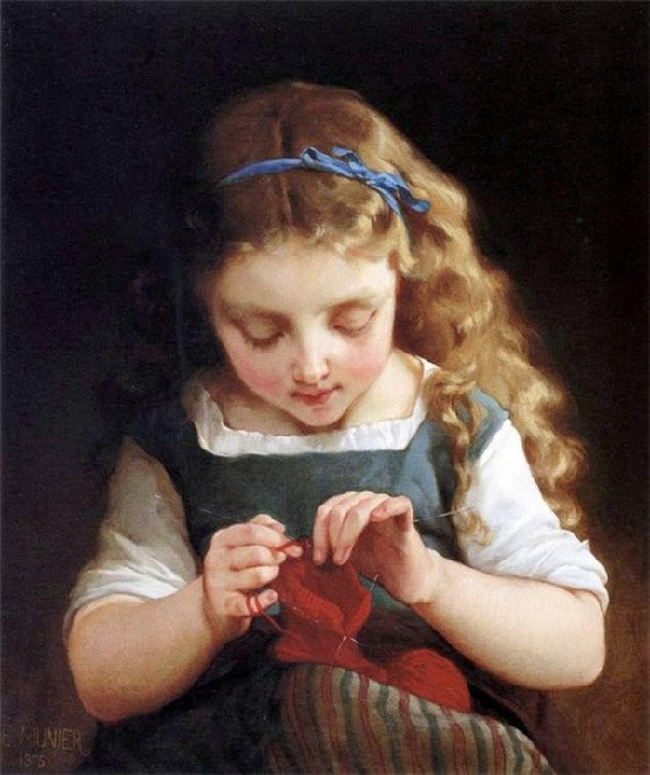 Девочка за вязанием. Автор: Johann Georg Meyer.