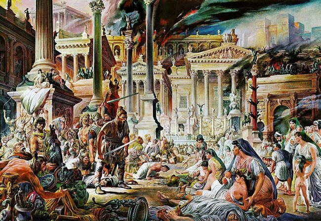 Падение Рима произвело на современников оглушительное впечатление. Это было подобно концу мира: «Ужасная весть приходит с запада: Рим в осаде, жизнь граждан выкупается за золото… Рыдания прерывают слова… Взят город, который взял целый мир. Муки голода довели людей до ужасной пищи, пожирали взаимно друг друга…», – писал Блаженный Иероним.