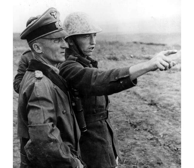 Командир дивизии «Гроссдойчланд» генерал-лейтенант Хассо фон Мантойфель и румынский офицер связи обсуждают взаимодействие