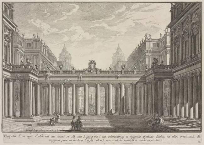 Пиранези застал Рим не в лучшие его времена: город ветшал и приходил в упадок. Современная архитектура показалась ему неинтересной и вялой. Пиранези жаловался в письмах друзьям на «неимение меценатов этого благороднейшего искусства, что подтверждается отсутствием построек, подобных Форуму Нервы, Колизею или дворцу Нерона». Отсутствие тех, кто желал бы инвестировать в масштабные архитектурные проекты, положило конец мечтам начинающего зодчего.