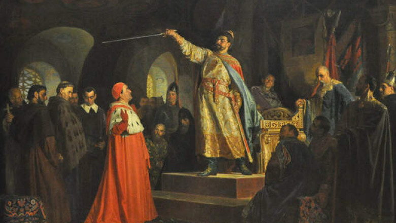 Роман Галицкий принимает послов папы Иннокентия III. Неврев Николай Васильевич 1875