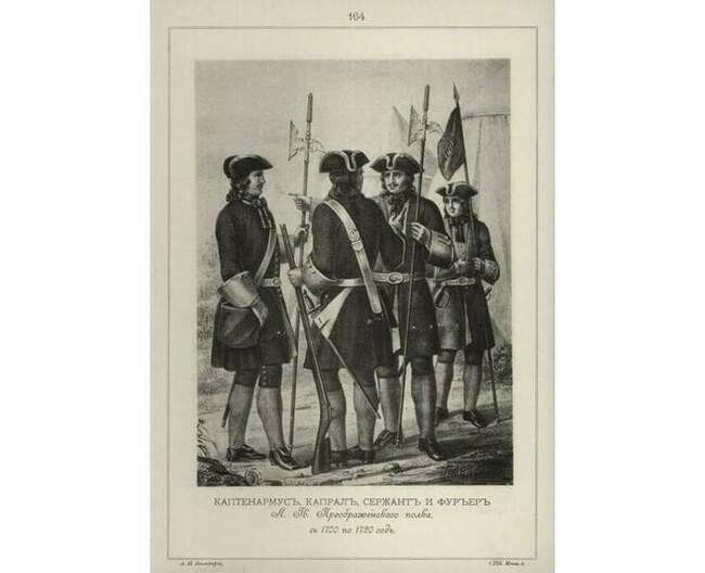 КАПТЕНАРМУС, КАПРАЛ, СЕРЖАНТ и ФУРЬЕР Л.-Гв. Преображенского полка, с 1700 по 1720 год. Историческое описание одежды и вооружения российских войск. [Висковатов].