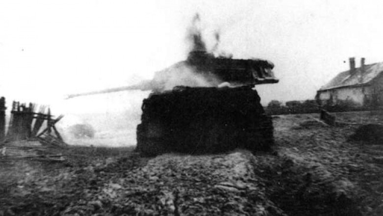 Снимок сделанный членом экипажа одного из «Королевских тигров» атаковавших городок Полгардь на которой видно гибель танка №124.