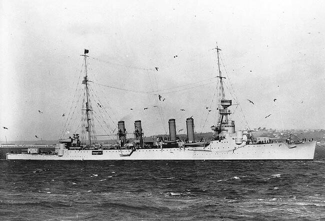 Крейсер Omaha (CL-4) в порту Виктория (Канада, провинция Британская Колумбия) во время своего первого официального визита, 24 мая 1923 года