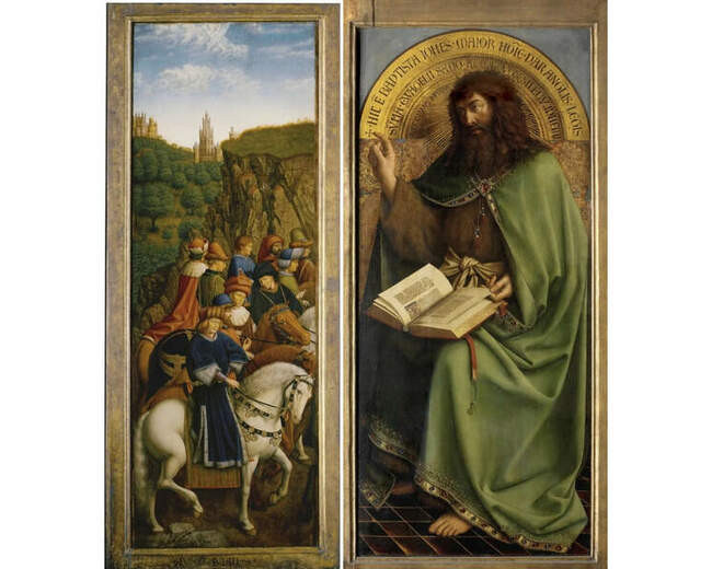 Братья Ван Эйки, «Гентский алтарь. Праведные судьи», 1432. и Братья Ван Эйки, «Гентский алтарь. Иоанн Креститель», 1432