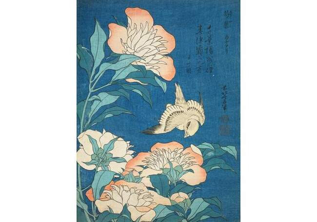 Утагава Хиросигэ. Птица среди распустившихся пионов