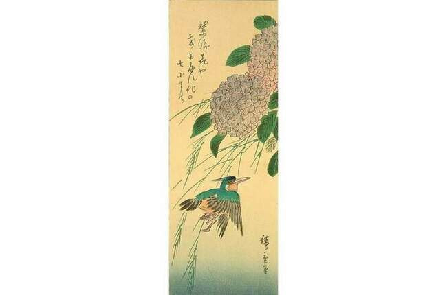 Утагава Хиросигэ. Зимородок и гортензия. Серия "Птицы и цветы"