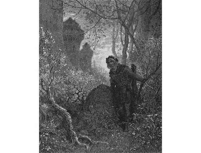 Блондель узнает голос пленного Ричарда. Гравюра Гюстова Доре