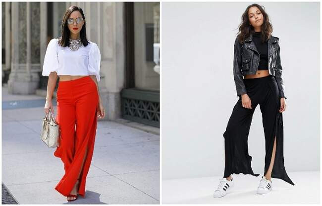 Если брюки уже давно являются составляющей вашего повседневного стиля и классические модели порядком надоели, обратите внимание на нестандартный вариант с разрезами, который является настоящей находкой этого сезона. Посмотрите на фото звезд и streetstyle-блогеров: они уже давно носят данный элемент гардероба, каждый раз экспериментируя с местом расположения разреза. Он может быть по центру, сбоку, сзади и самой разной длины. Если вы покупаете брюки для работы, где существует строгий дресс-код, или нуждаетесь в универсальной вещи, тогда отдавайте предпочтение модели прямого силуэта с небольшим разрезом по центру. Что касается цвета, то пускай это будут классические оттенки: черный, серый, темно-синий, бежевый и другие.