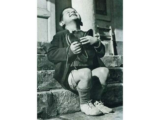 Фото времен Второй мировой войны. Австрийский мальчик получил новые ботинки