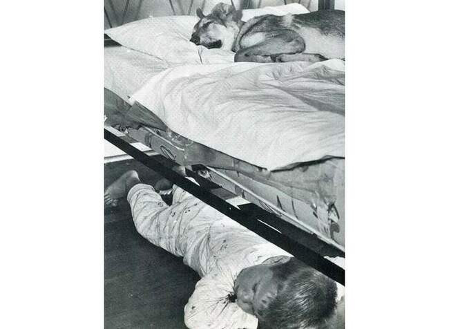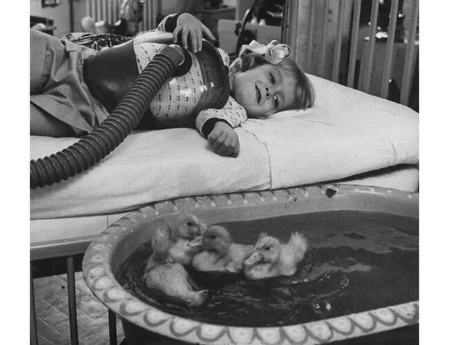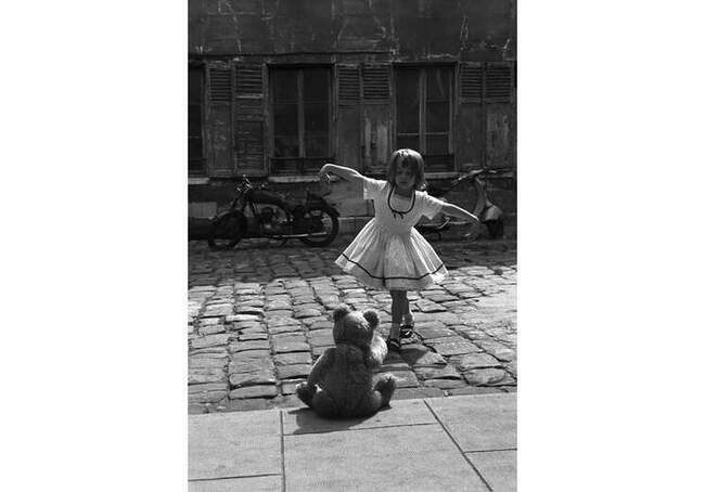 Девочка танцует перед своим плюшевым мишкой. Париж, 1961 год