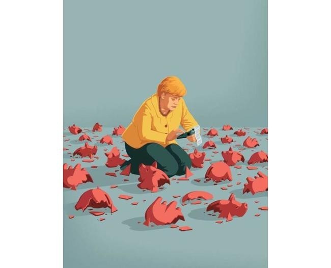 Меркель ведёт подсчёт финансов. Автор: Stephan Schmitz.