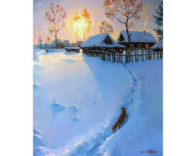 Ибо где, как ни в живописи, можно передать то, что очень сложно выразить словами. Все чудеса, сотворенные матушкой-природой ложатся на полотна Дмитрия Левина и застывают во времени на века. На его картинах можно увидеть все прелести этой удивительной поры: и белоснежные покрова из пухового снега, которые укрыли уснувшие ветви деревьев и кустарников, и зеркальную гладь застывших рек, и глубокие снега, на которых виднеются следы от полозьев саней и лап лесных обитателей и даже услышать как скрипит мороз и воет вьюга.