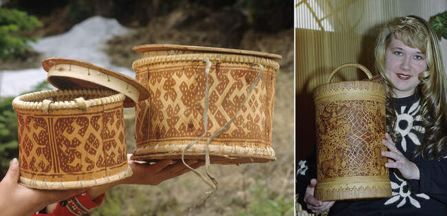 А вот корзинки из бересты для хранения продуктов на кухне называются туесками. Часто они закрываются крышками с ручками. Мастера по плетению туесков дают в работе волю своей фантазии, украшая их различными рисунками. В каждом регионе были свои традиционные росписи, от растительных орнаментов до бытовых сцен. Сегодня такие туески до сих пор продаются в самых обычных магазинах и используются для хранения круп.