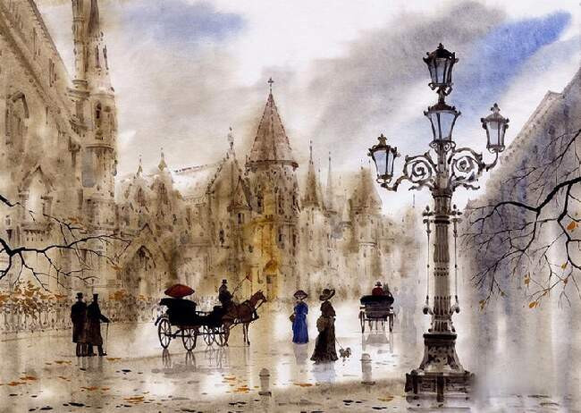 Благодаря неуемной фантазии художников мы будто отправляемся в удивительное путешествие во времени по проспектам, улицам, мостам этого удивительного города, неотъемлемой частью которого есть погодные условия, связанные с влажностью - дождем, туманом или же просто пасмурной погодой.