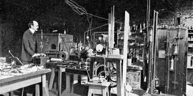 Лауреат Нобелевской премии по физике 1906 года Джозеф Джон Томсон проводит эксперимент в Кавендишской лаборатории