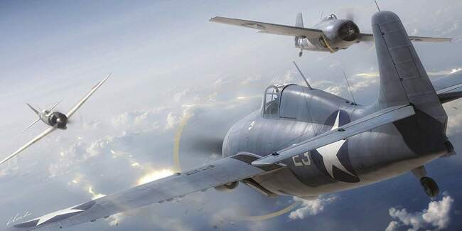 Шестёрка «Грумман» TBF-1 «Авенджер» при Мидуэе. «Выжил только один», автор картины — Крэйг Кадера