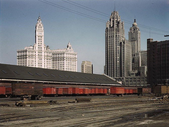 Сортировочная станция в Чикаго, штат Иллинойс, 1942 год. Фотограф Джек Делано