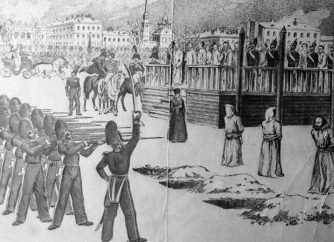 Военный суд приговорил 16 человек, включая самого Петрашевского и отставного поручика Федора Достоевского, к «смертной казни расстрелянием». Царь демонстративно помиловал их, уже привязанных к расстрельным столбам. Казнь заменили каторгой.